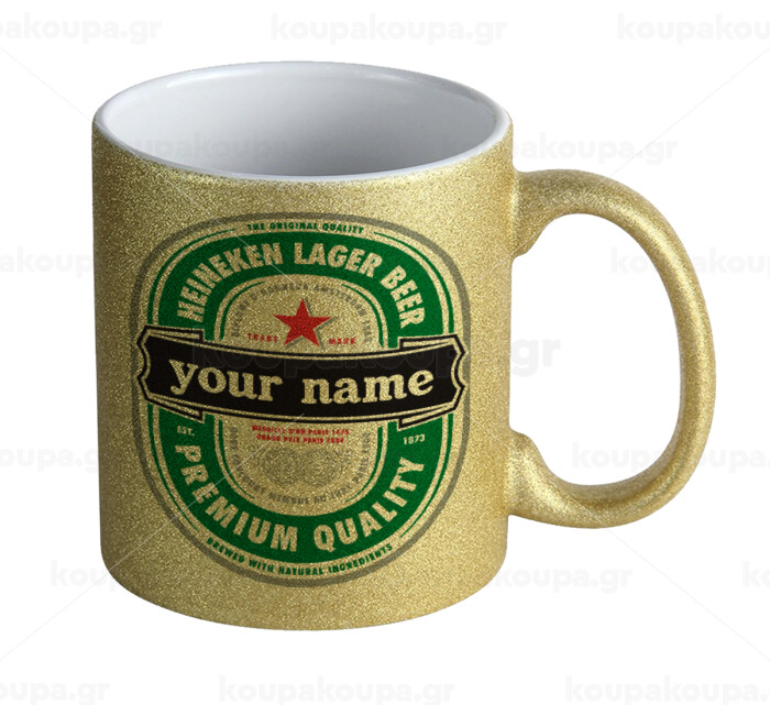 Heineken με όνομα, Κούπα Χρυσή Glitter που γυαλίζει, κεραμική, 330ml