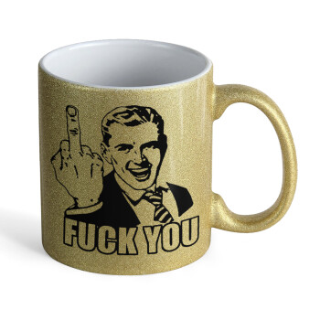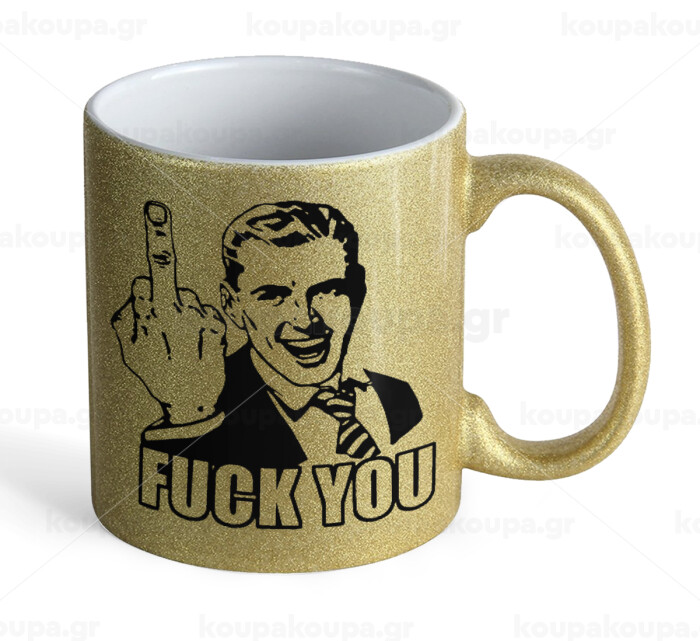 The finger, Κούπα Χρυσή Glitter που γυαλίζει, κεραμική, 330ml