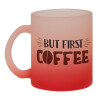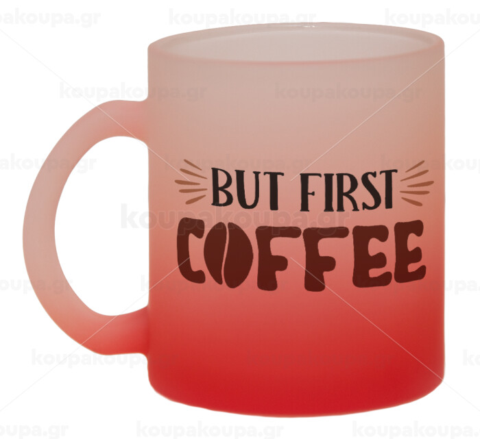 But first Coffee, Κούπα γυάλινη δίχρωμη με βάση το κόκκινο ματ, 330ml