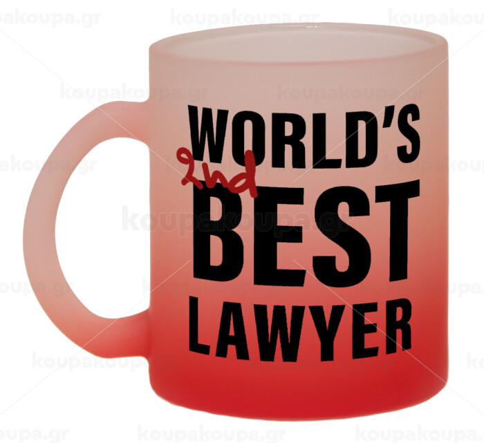 2nd, World Best Lawyer , Κούπα γυάλινη δίχρωμη με βάση το κόκκινο ματ, 330ml