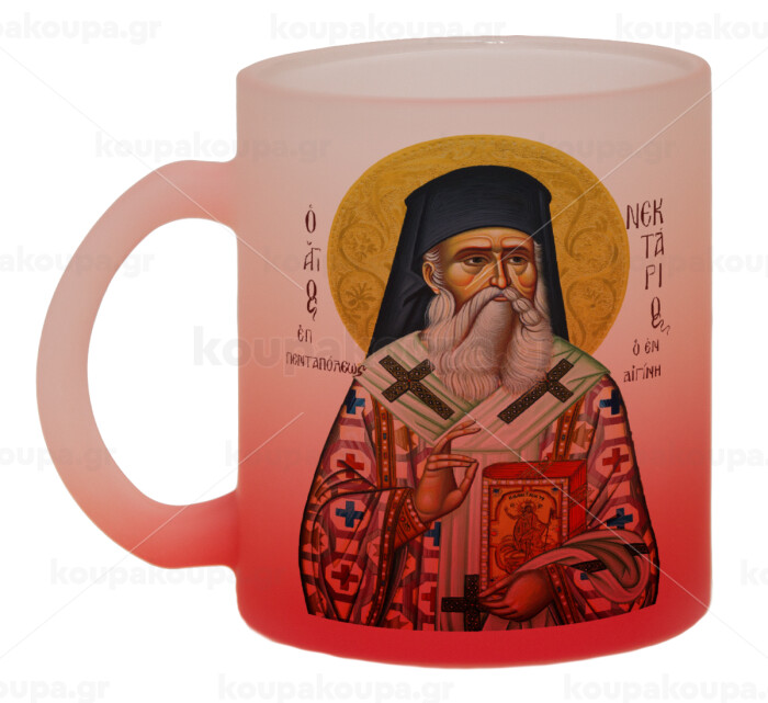 Άγιος Νεκτάριος, Κούπα γυάλινη δίχρωμη με βάση το κόκκινο ματ, 330ml