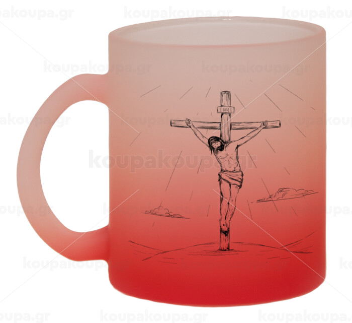 Jesus Christ , Κούπα γυάλινη δίχρωμη με βάση το κόκκινο ματ, 330ml