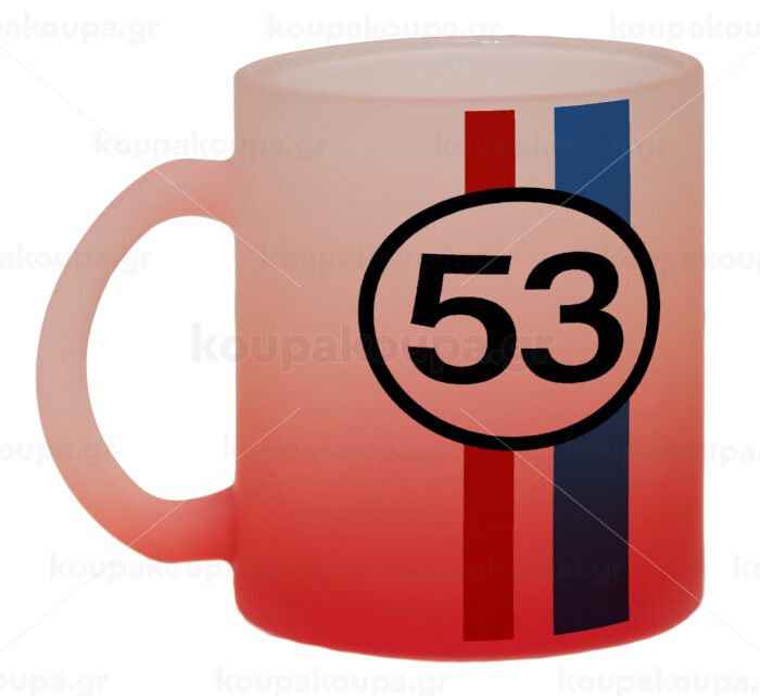 VW Herbie 53, Κούπα γυάλινη δίχρωμη με βάση το κόκκινο ματ, 330ml