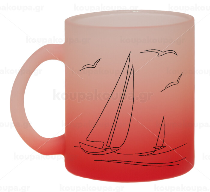 Ιστιοπλοΐα Sailing, Κούπα γυάλινη δίχρωμη με βάση το κόκκινο ματ, 330ml