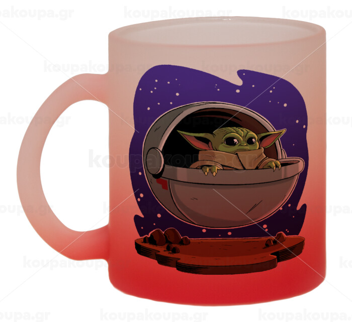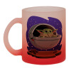 Baby Yoda mandalorian, Κούπα γυάλινη δίχρωμη με βάση το κόκκινο ματ, 330ml