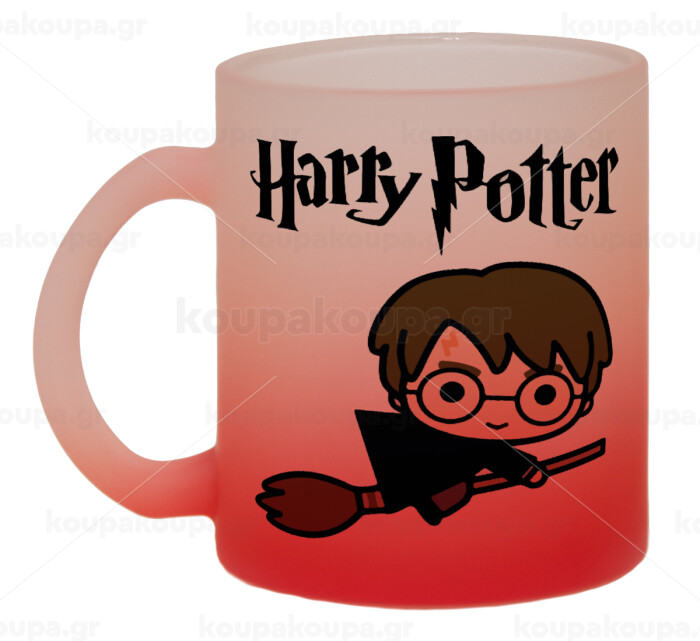 Harry potter kid, Κούπα γυάλινη δίχρωμη με βάση το κόκκινο ματ, 330ml