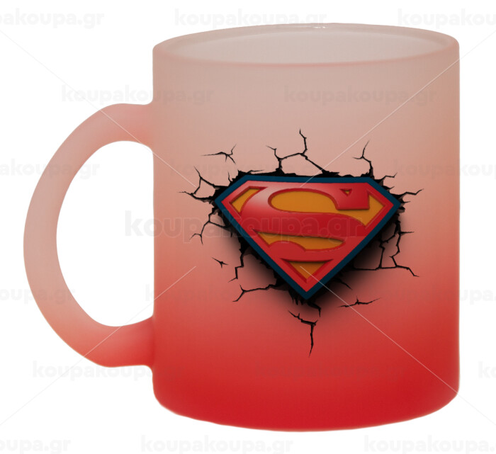 Superman cracked, Κούπα γυάλινη δίχρωμη με βάση το κόκκινο ματ, 330ml