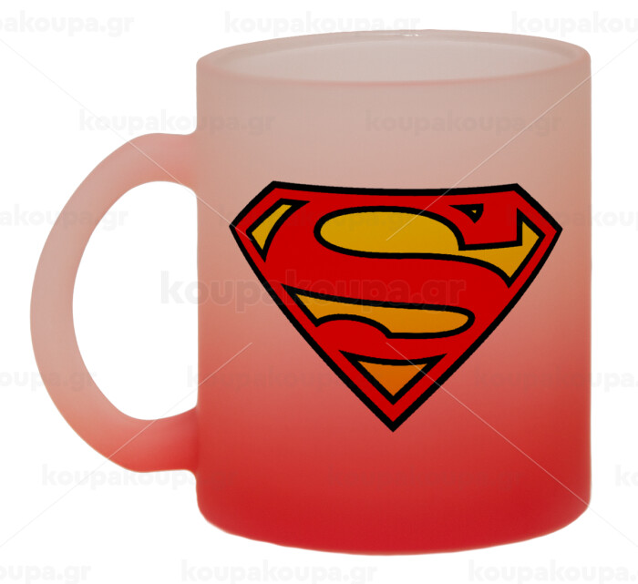 Superman vintage, Κούπα γυάλινη δίχρωμη με βάση το κόκκινο ματ, 330ml