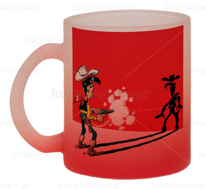 Λούκυ Λουκ σκιές, Κούπα γυάλινη δίχρωμη με βάση το κόκκινο ματ, 330ml