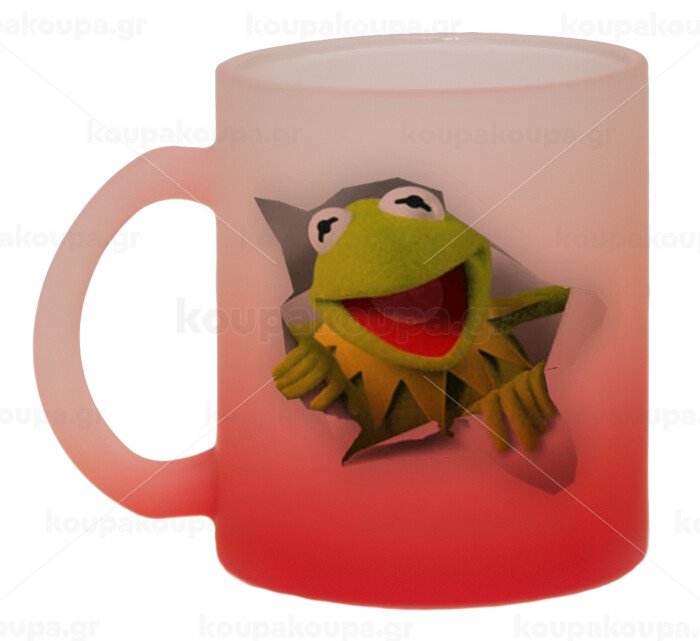 Kermit the frog, Κούπα γυάλινη δίχρωμη με βάση το κόκκινο ματ, 330ml