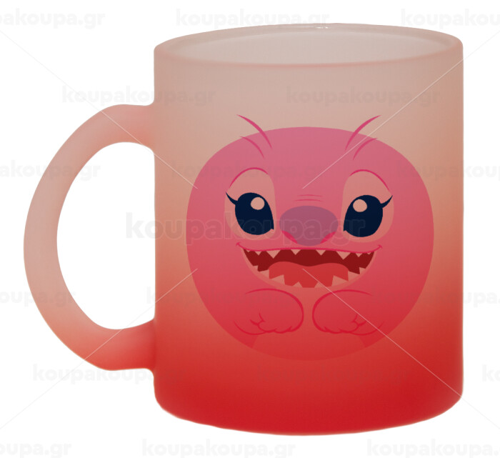 Lilo & Stitch Angel pink, Κούπα γυάλινη δίχρωμη με βάση το κόκκινο ματ, 330ml