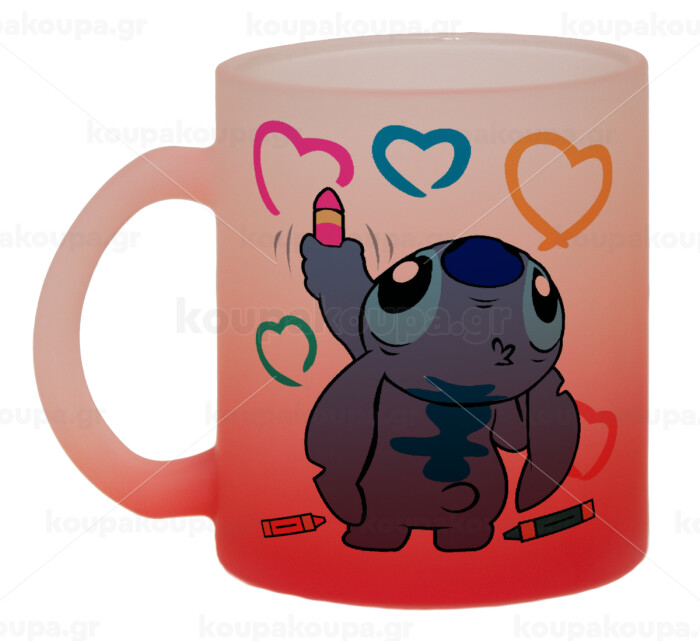 Lilo & Stitch painting, Κούπα γυάλινη δίχρωμη με βάση το κόκκινο ματ, 330ml