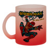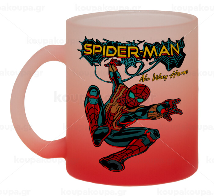Spiderman no way home, Κούπα γυάλινη δίχρωμη με βάση το κόκκινο ματ, 330ml