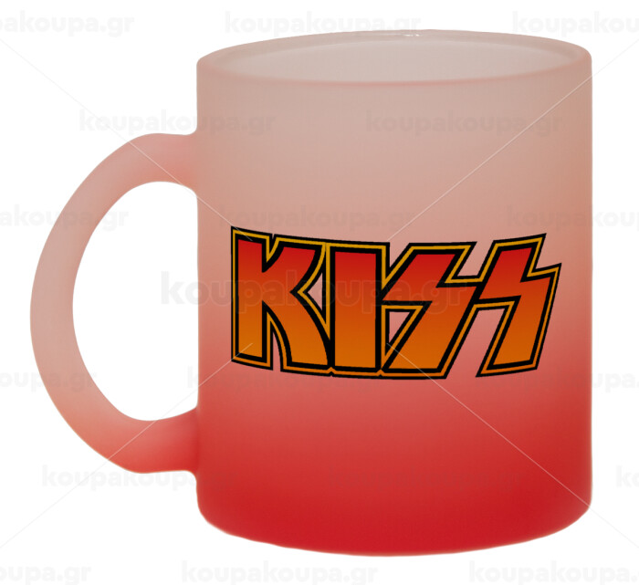 KISS, Κούπα γυάλινη δίχρωμη με βάση το κόκκινο ματ, 330ml