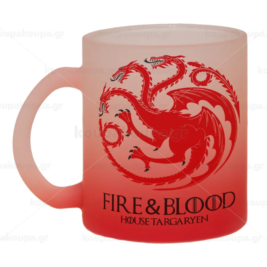GOT House Targaryen, Fire Blood, Κούπα γυάλινη δίχρωμη με βάση το κόκκινο ματ, 330ml