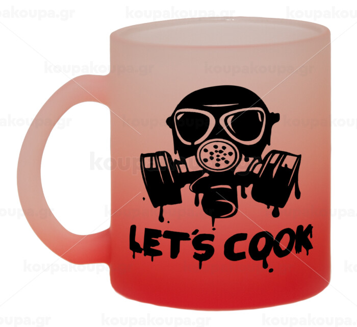 Let's cook mask, Κούπα γυάλινη δίχρωμη με βάση το κόκκινο ματ, 330ml