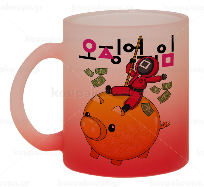 Squid game money pig, Κούπα γυάλινη δίχρωμη με βάση το κόκκινο ματ, 330ml