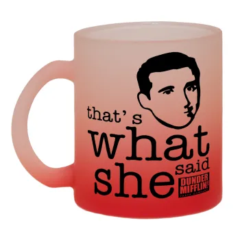 The office Michael That's what she said, Κούπα γυάλινη δίχρωμη με βάση το κόκκινο ματ, 330ml