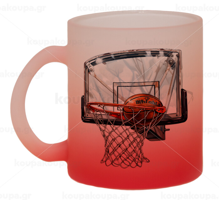 Basketball, Κούπα γυάλινη δίχρωμη με βάση το κόκκινο ματ, 330ml