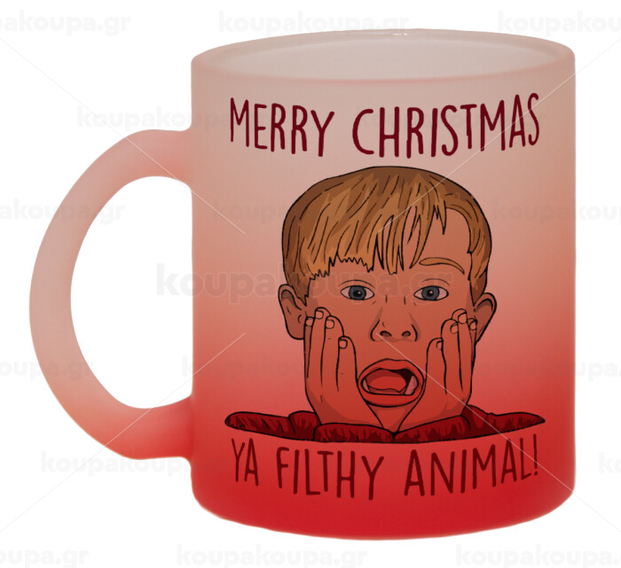 home alone, Merry Christmas ya filthy animal, Κούπα γυάλινη δίχρωμη με βάση το κόκκινο ματ, 330ml