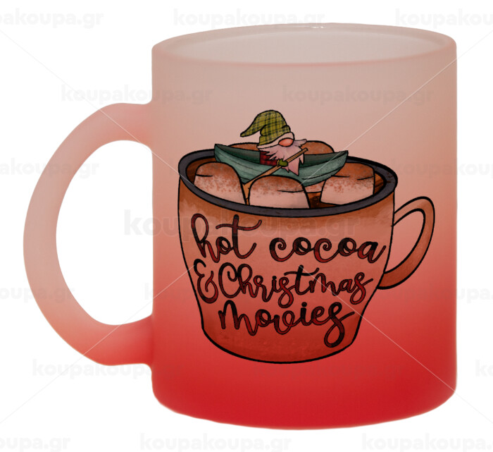 Hot Cocoa And Christmas Movies, Κούπα γυάλινη δίχρωμη με βάση το κόκκινο ματ, 330ml