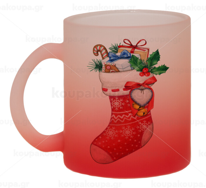 Xmas boot, Κούπα γυάλινη δίχρωμη με βάση το κόκκινο ματ, 330ml