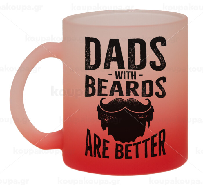 Dad's with beards are better, Κούπα γυάλινη δίχρωμη με βάση το κόκκινο ματ, 330ml