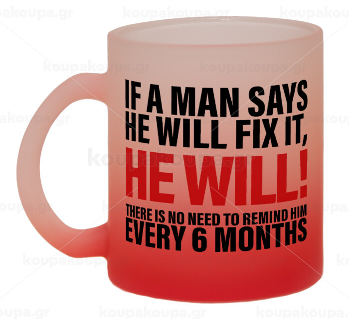 If a man says he will fix it He will There is no need to remind him every 6 months, Κούπα γυάλινη δίχρωμη με βάση το κόκκινο ματ, 330ml