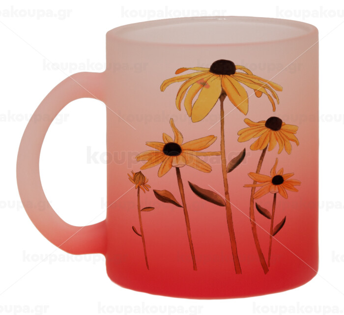 Daisies flower, Κούπα γυάλινη δίχρωμη με βάση το κόκκινο ματ, 330ml