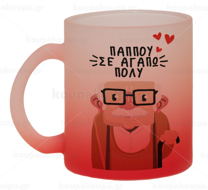 Παππού σε αγαπώ πολύ!, Κούπα γυάλινη δίχρωμη με βάση το κόκκινο ματ, 330ml