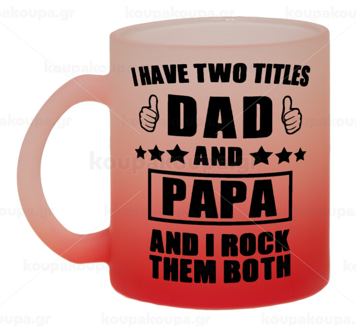 I have two title, DAD & PAPA, Κούπα γυάλινη δίχρωμη με βάση το κόκκινο ματ, 330ml