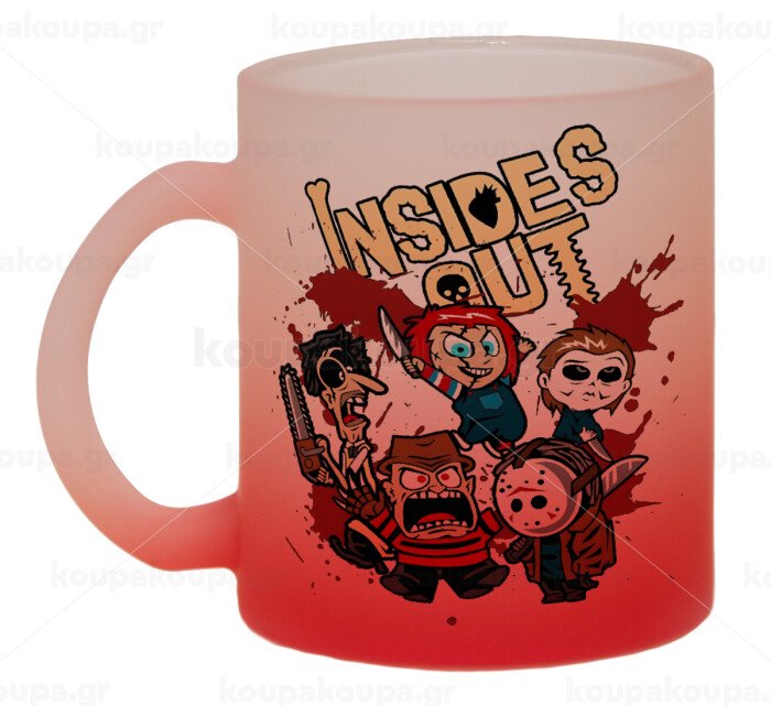 Halloween Inside out, Κούπα γυάλινη δίχρωμη με βάση το κόκκινο ματ, 330ml