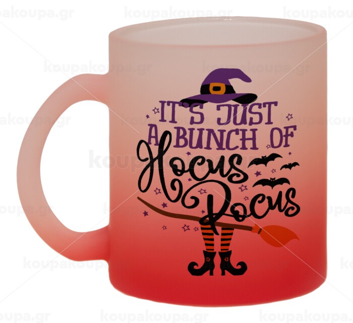 It's just a bunch of hocus pocus - halloween, Κούπα γυάλινη δίχρωμη με βάση το κόκκινο ματ, 330ml