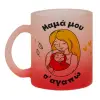 Μανούλα σ'αγαπώ αγκαλιά!, Κούπα γυάλινη δίχρωμη με βάση το κόκκινο ματ, 330ml