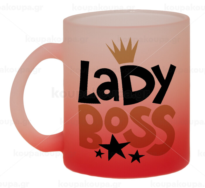 Lady Boss, Κούπα γυάλινη δίχρωμη με βάση το κόκκινο ματ, 330ml
