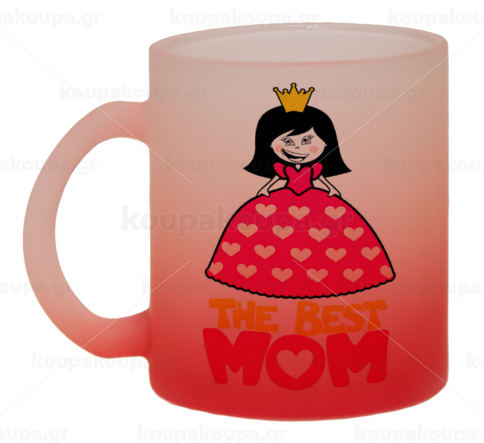 The Best Mom Queen, Κούπα γυάλινη δίχρωμη με βάση το κόκκινο ματ, 330ml