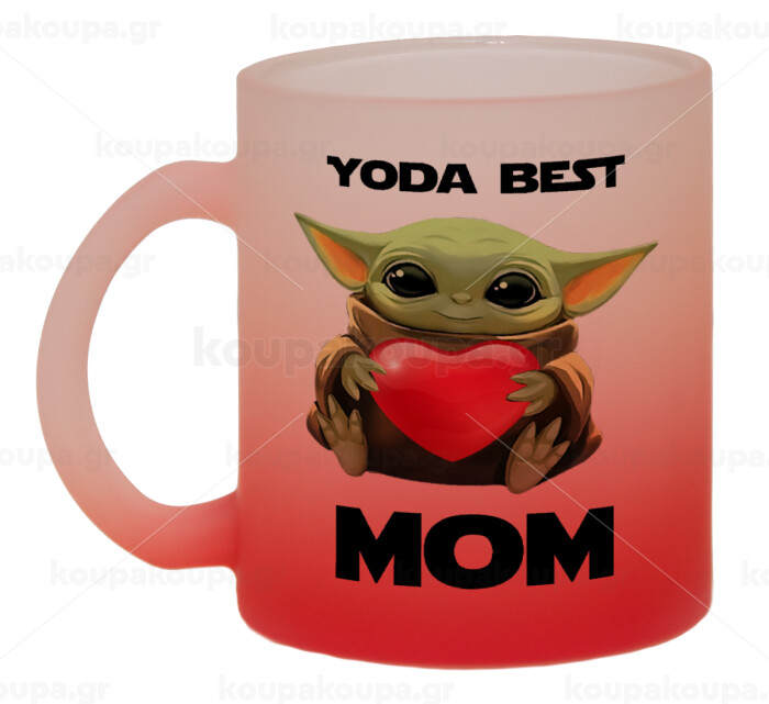 Yoda Best mom, Κούπα γυάλινη δίχρωμη με βάση το κόκκινο ματ, 330ml