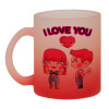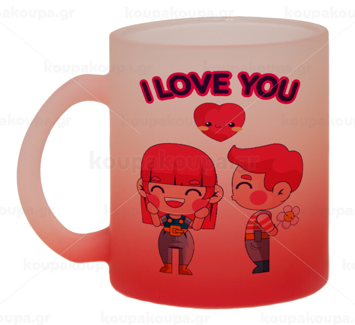 Couple, I love you, Κούπα γυάλινη δίχρωμη με βάση το κόκκινο ματ, 330ml
