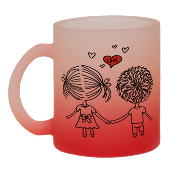 Hold my hand for ever, Κούπα γυάλινη δίχρωμη με βάση το κόκκινο ματ, 330ml