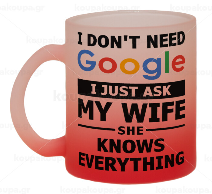 I don't need Google, just ask my WIFE, Κούπα γυάλινη δίχρωμη με βάση το κόκκινο ματ, 330ml
