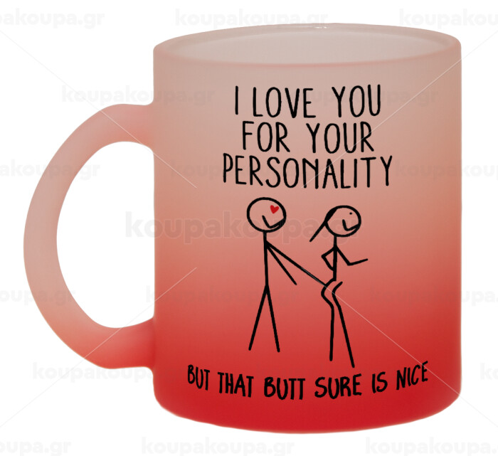 I Love you for your personality, Κούπα γυάλινη δίχρωμη με βάση το κόκκινο ματ, 330ml