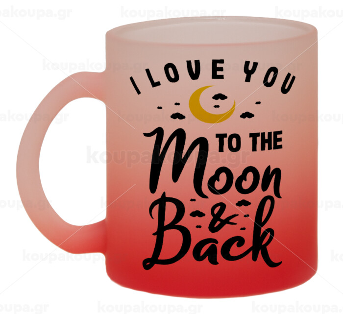 I love you to the moon and back, Κούπα γυάλινη δίχρωμη με βάση το κόκκινο ματ, 330ml