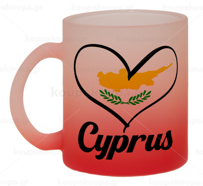 Cyprus flag, Κούπα γυάλινη δίχρωμη με βάση το κόκκινο ματ, 330ml