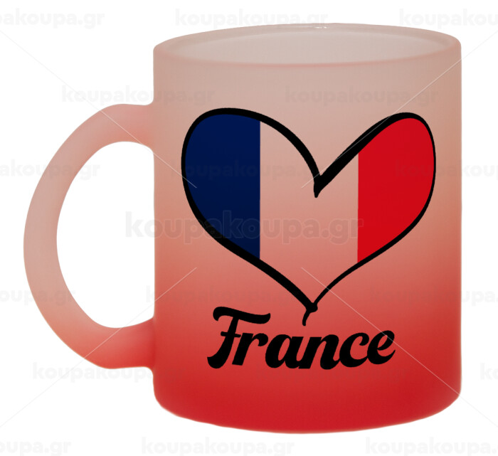 France flag, Κούπα γυάλινη δίχρωμη με βάση το κόκκινο ματ, 330ml