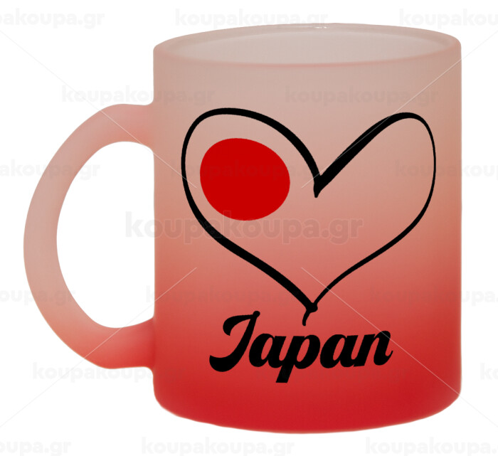 Japan flag, Κούπα γυάλινη δίχρωμη με βάση το κόκκινο ματ, 330ml