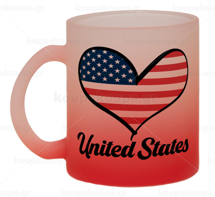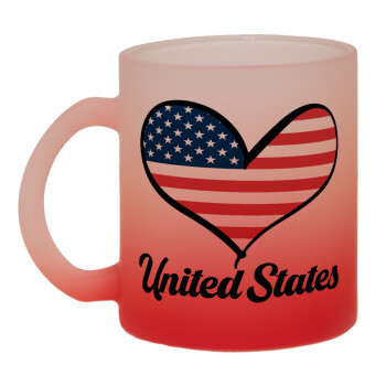 USA flag, Κούπα γυάλινη δίχρωμη με βάση το κόκκινο ματ, 330ml