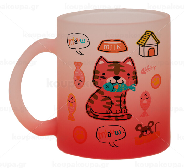 Cats and Fishes, Κούπα γυάλινη δίχρωμη με βάση το κόκκινο ματ, 330ml