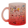 Doodle kids, Κούπα γυάλινη δίχρωμη με βάση το κόκκινο ματ, 330ml