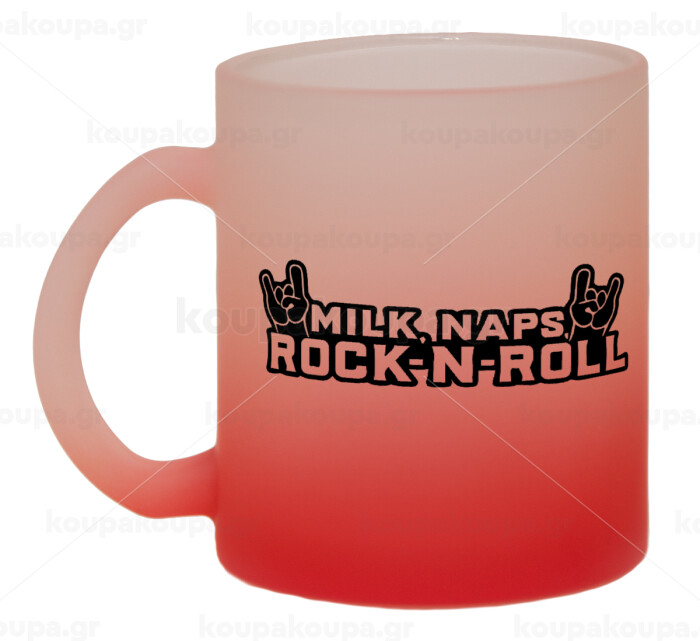 Milk, Naps, Rock N Roll, Κούπα γυάλινη δίχρωμη με βάση το κόκκινο ματ, 330ml