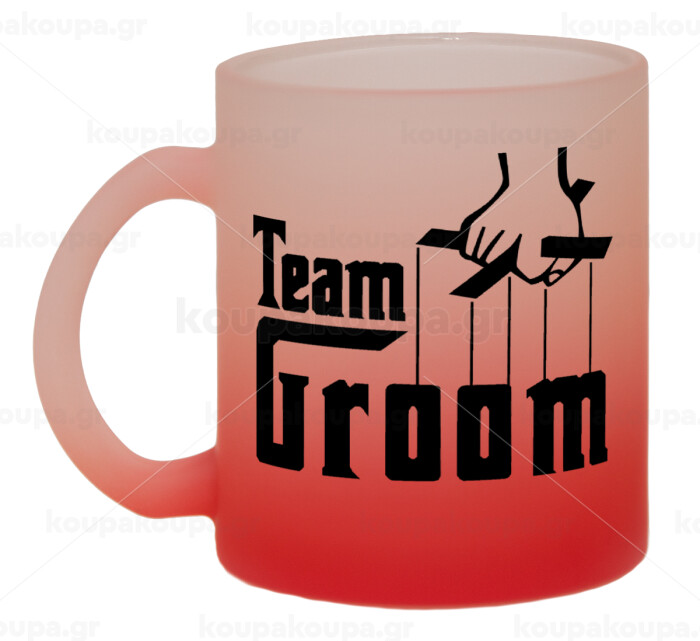 Team Groom, Κούπα γυάλινη δίχρωμη με βάση το κόκκινο ματ, 330ml